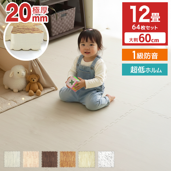 ジョイントマット 大判 厚手 12畳 2cm 木目 プレイマット パズルマット クッションマット 床マット 60cm 防音 フロアマット ベビーマット サイドパーツ付