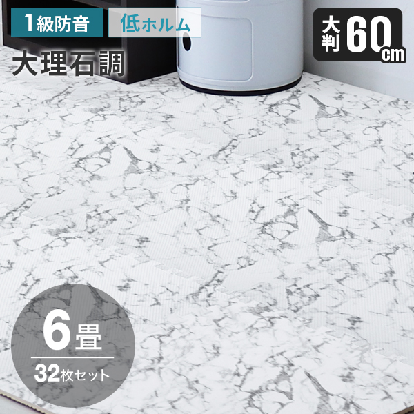 ジョイントマット 大判 60cm おしゃれ ベビーマット 大理石調 6畳 32枚 防音 厚さ1cm サイドパーツ付き 高級感防振 キズ防止 耐久 耐水 衝撃吸収