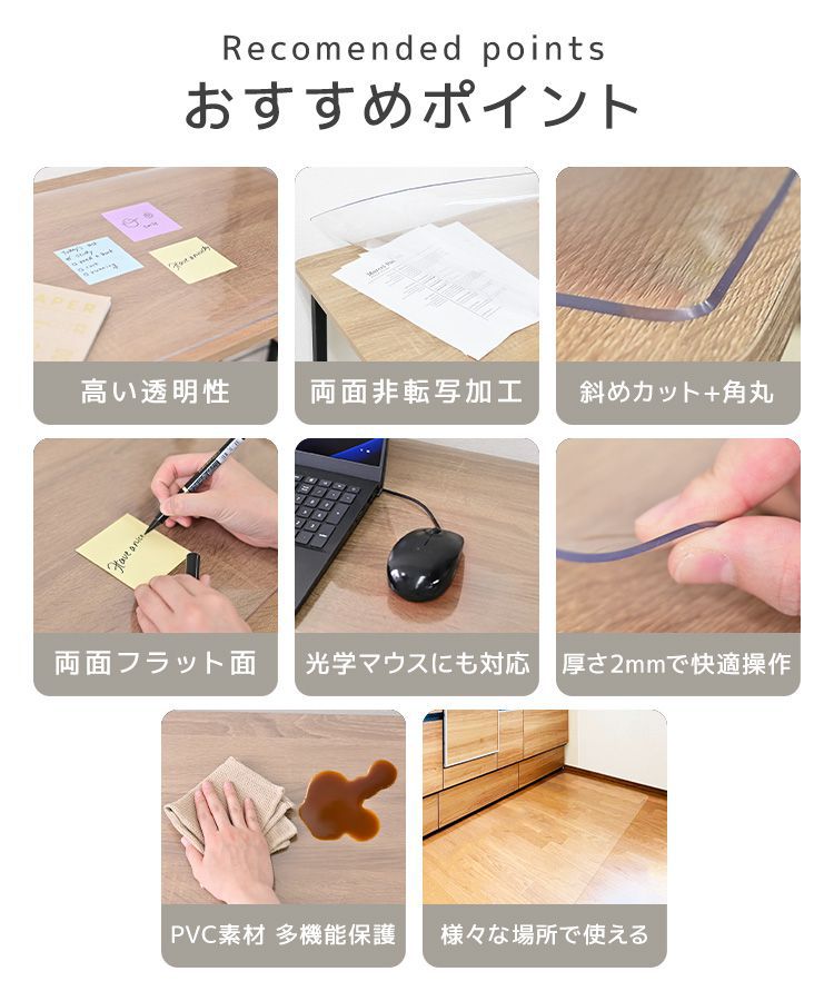 デスクマット 透明 学習机 120×60 クリアマット 厚さ2mm 光学マウス対応 抗菌 防カビ 防水 坊燃 デスク 下敷き オフィス テーブルマット 傷防止