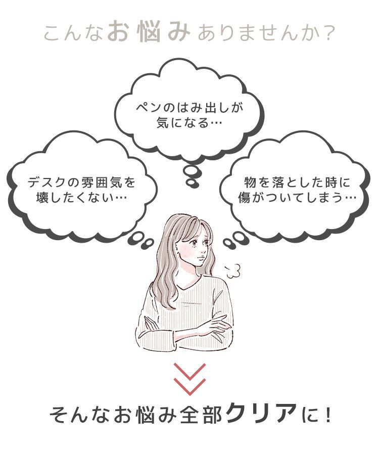 カレンダーや予定表、メモなど挟めるクリアタイプのデスクマットです。