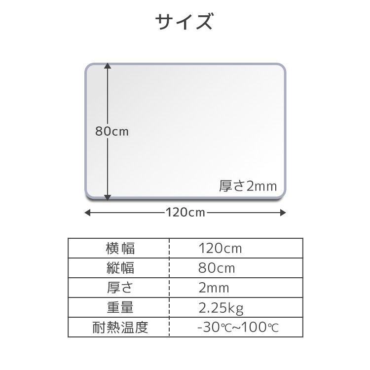サイズ(約):幅120cm×奥行80cm×厚さ2mm