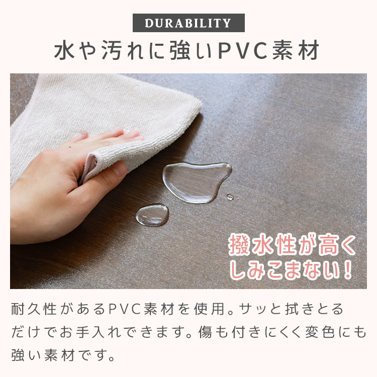 水や汚れに強いPVC素材で、サッと拭き取るだけでお手入OK!
