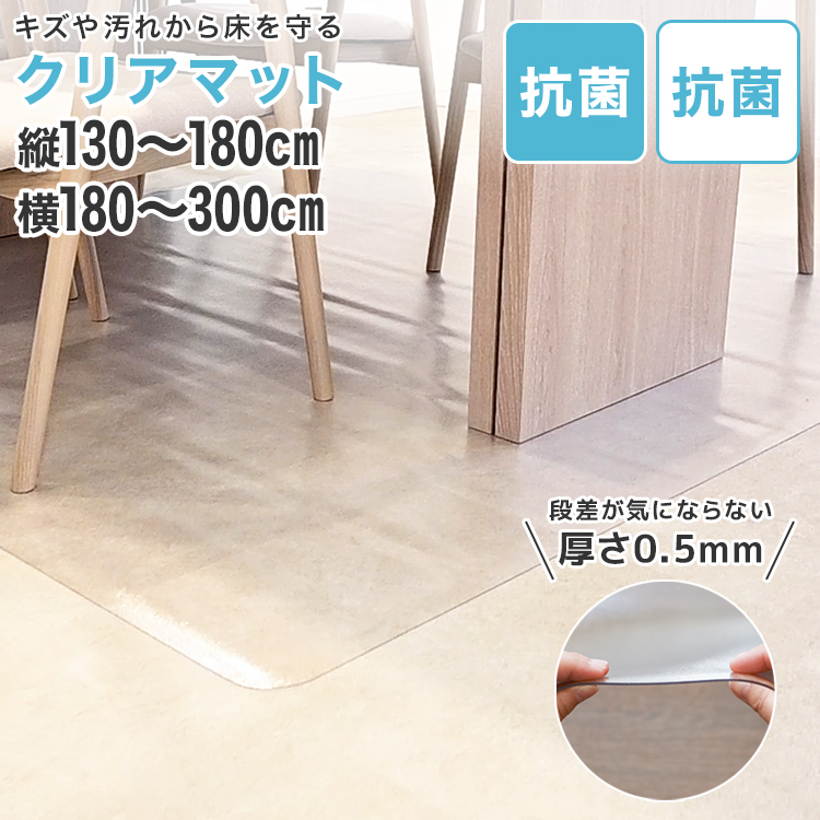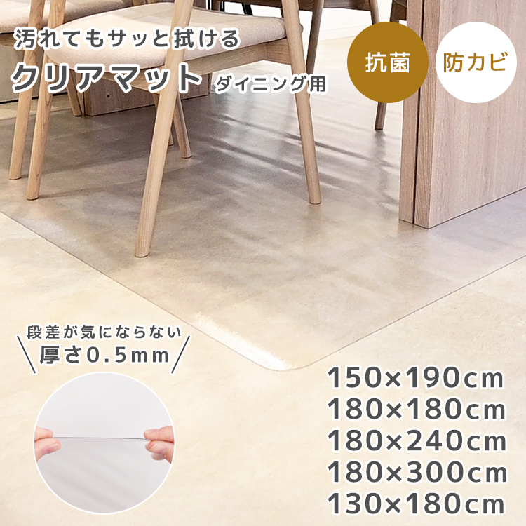 【2980円〜】ダイニングマット クリア 300 240 190 180 拭ける クリアマット 超薄0.5mm 床保護 抗菌 防水 撥水 カット自由