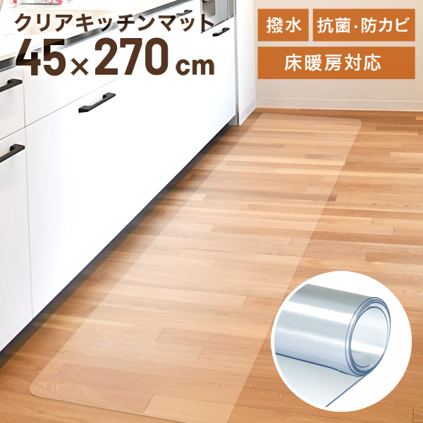 キッチンマット 透明 クリア 270 拭ける PVC 270×45 おしゃれ キッチン 防水 撥水 滑り止め 床暖房対応 クリアマット 台所 フローリング フロア
