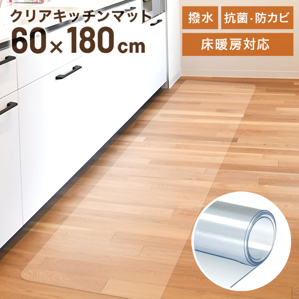 キッチンマット 180 透明 拭ける PVC 180×60 クリア おしゃれ キッチン 防水 撥水 滑り止め 床暖房対応 クリアマット 台所 フローリング フロア