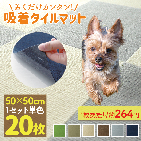 タイルマット タイルカーペット 吸着 20枚 50×50cm ズレない 洗える 接着材不要 ペット 赤ちゃん フロアマット パネルカーペット 防音 転倒防止