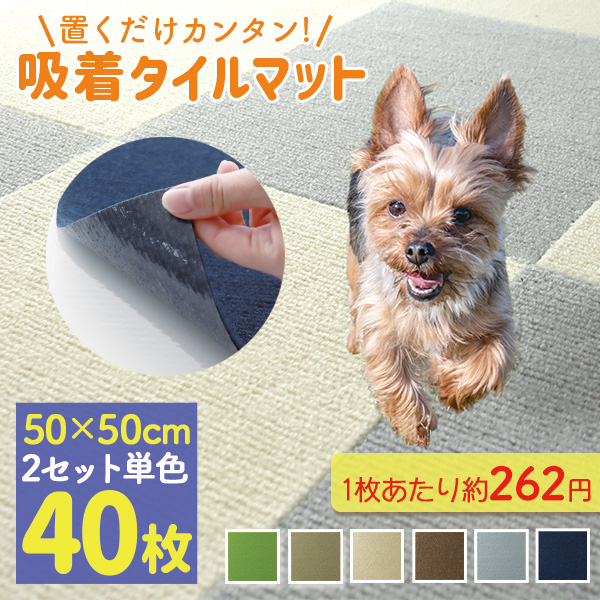 タイルマット タイルカーペット 吸着 40枚 50×50cm ズレない 洗える 接着材不要 ペット 赤ちゃん フロアマット パネルカーペット 防音 転倒防止