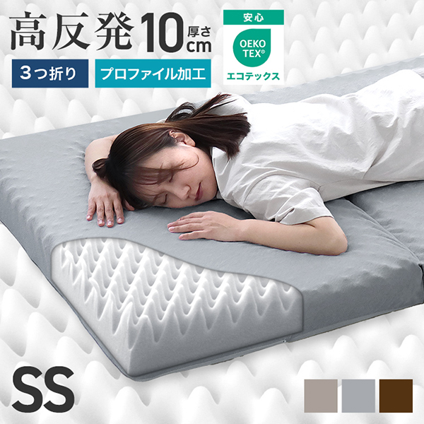 マットレス 三つ折り セミシングル 高反発マットレス 腰痛 プロファイル加工 極厚10cm ベッドマットレス 洗えるカバー 体圧分散 セミシングルマットレス
