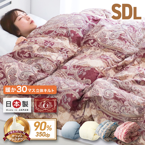 羽毛布団 セミダブル 掛け布団 日本製 ホワイトダックダウン90% 30マス立体キルト エクセルゴールドラベル GFマーク 暖かい 冬 抗菌 防臭 防ダニ 羽毛 布団