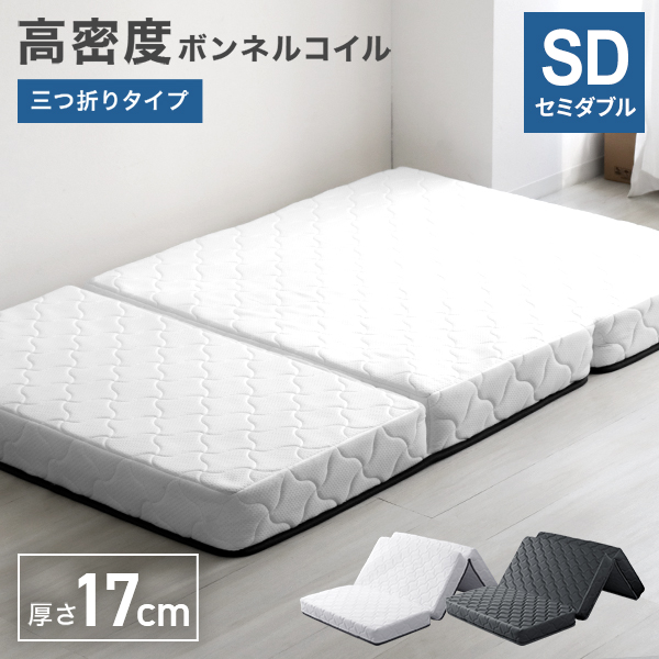 マットレス セミダブル ボンネルコイル 三つ折り スプリングマットレス 厚さ17cm 圧縮梱包 硬め ボンネルコイルマットレス 極厚 ベッドマットレス 腰痛 新生活