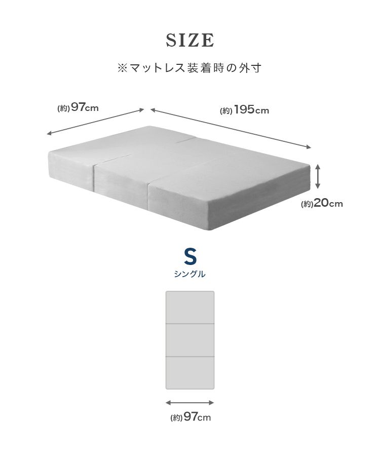 【厚さ20cm・三つ折りマットレス対応】
