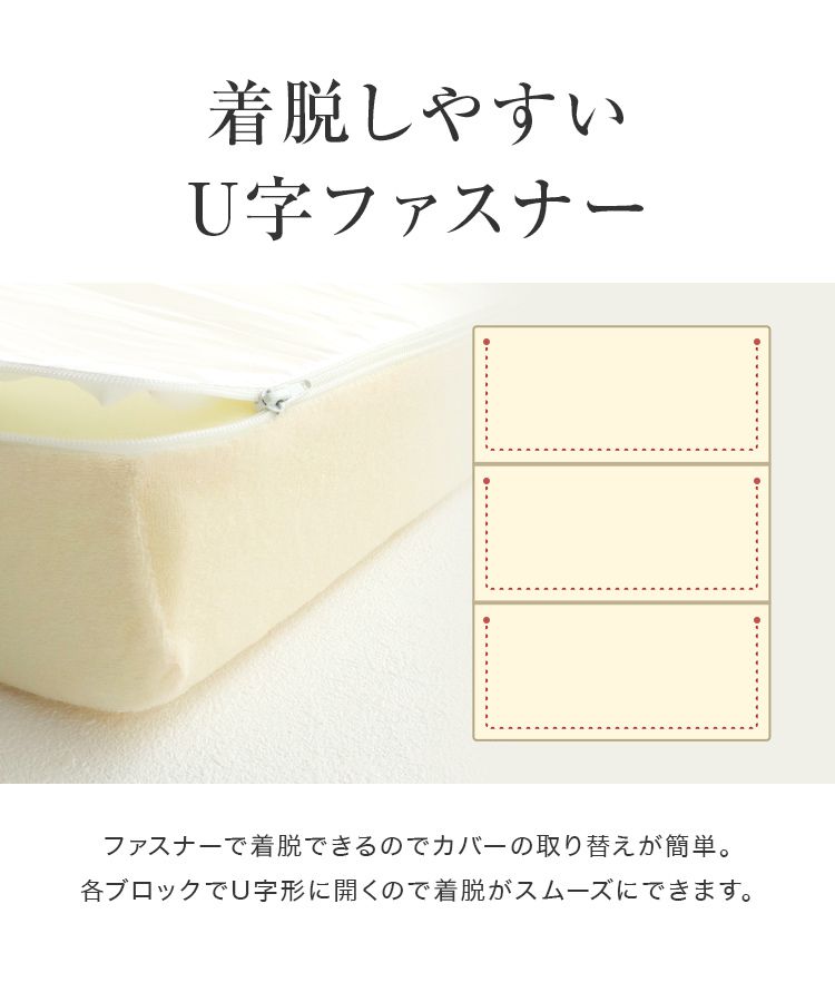ブロック毎のコの字ファスナーで着脱簡単!