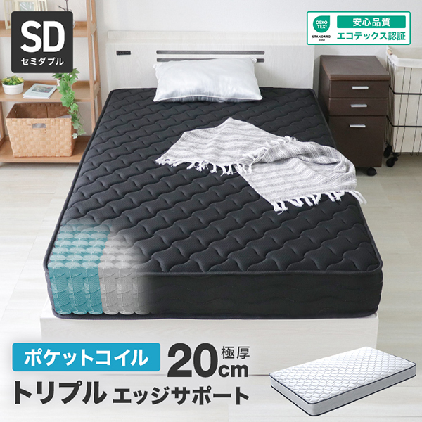 マットレス セミダブル ポケットコイルマットレス エッジサポート 硬め スプリングマットレス マット ベッドマットレス 極厚20cm ポケットコイル
