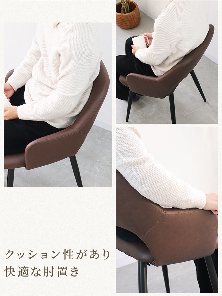 緩やかな曲線の背もたれが体にフィットして長時間座っても疲れにくく、長さがちょうどいいハーフアームなので、立ち座りしやすい設計となっております。