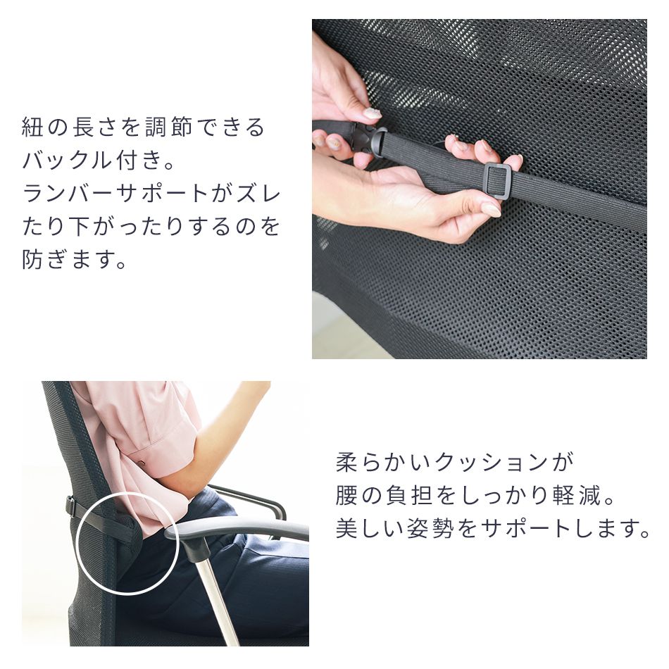 腰への負担をやわらげるランバーサポート。