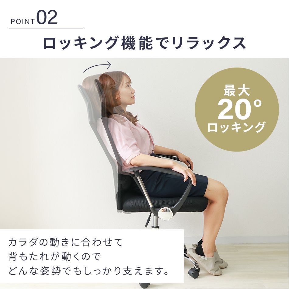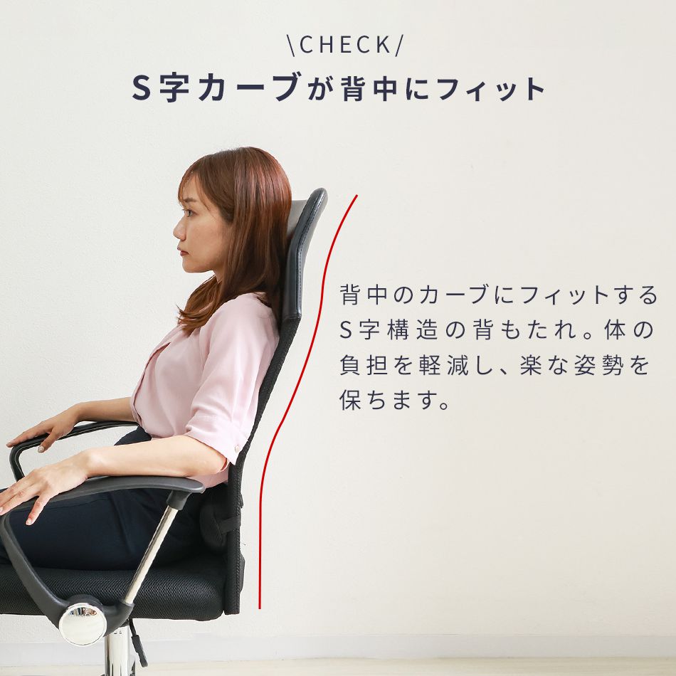 カラダの動きに合わせて背もたれが動くので、どんな姿勢でもしっかり支えます!