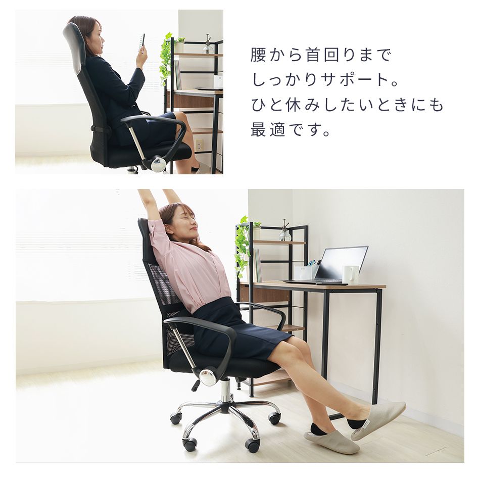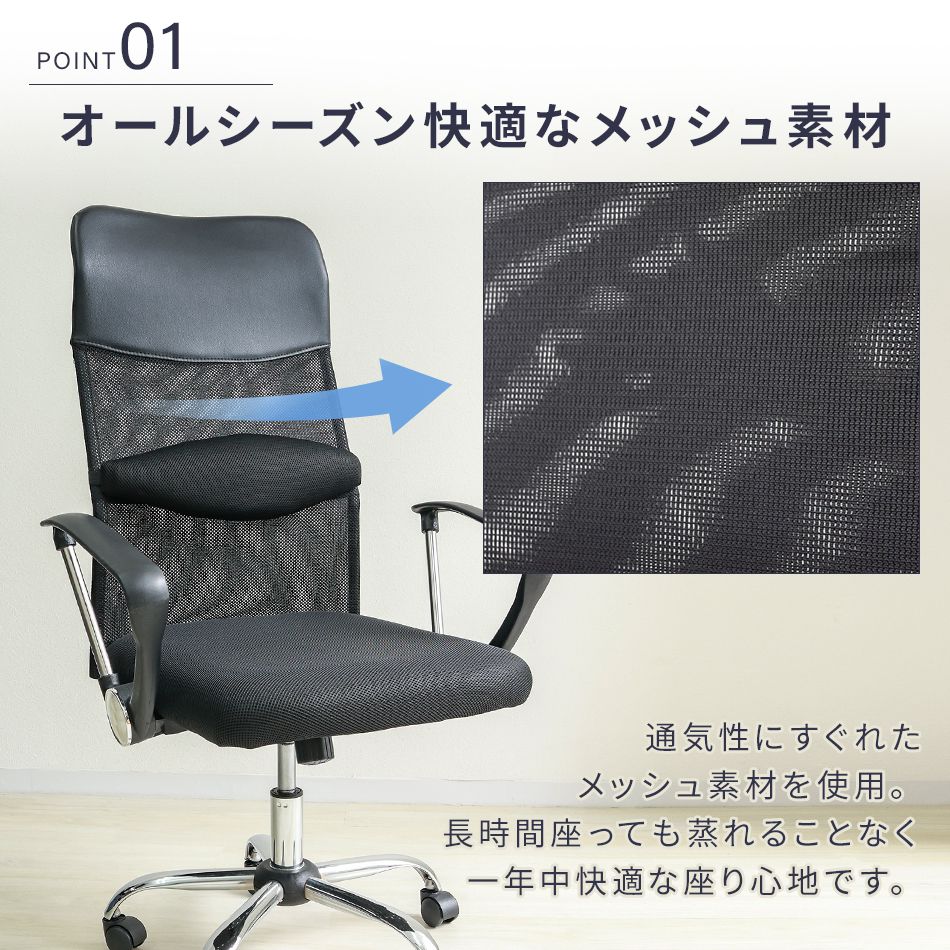 通気性の良いメッシュ素材を使用したオフィスチェアです。