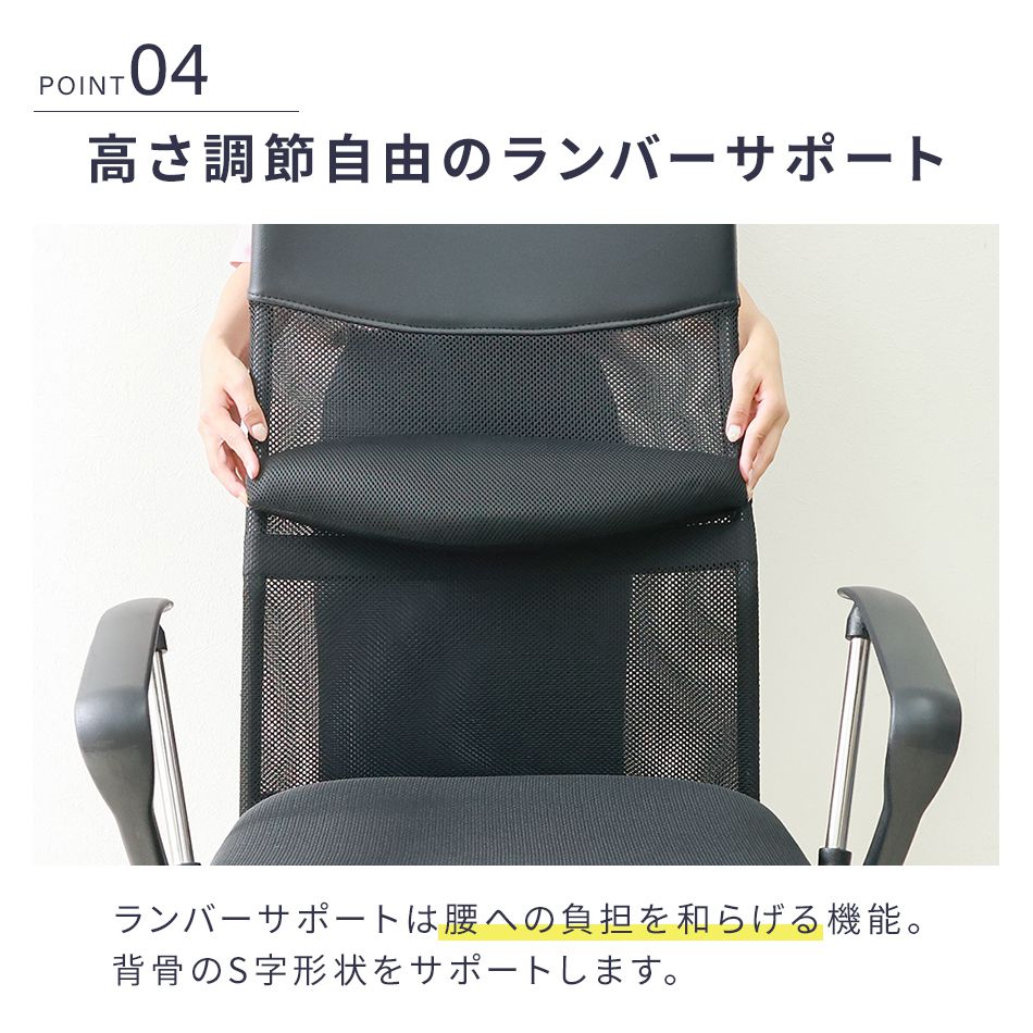 ● 高さ調節自由のランバーサポート&S字カーブ
