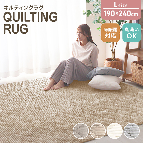 ラグ カーペット 洗える 3畳 フランネル キルト 190×240 おしゃれ オールシーズン 床暖房対応 防ダニ 抗菌 防臭 ラグマット キルトラグ 北欧 滑り止め付