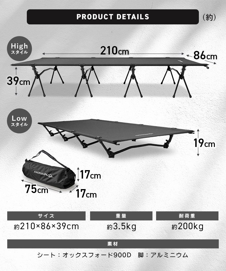 コット フォールディングコット キャンプ ベッド ワイド 折りたたみベッド コンパクト 折り畳み 簡易ベッド 軽量 アウトドア