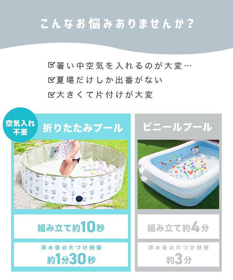 プール 折りたたみプール 家庭用 大型 子供用プール 空気入れ不要 ボールプール 小さい 砂遊び 子供用 室内 庭 丸型 浅い
