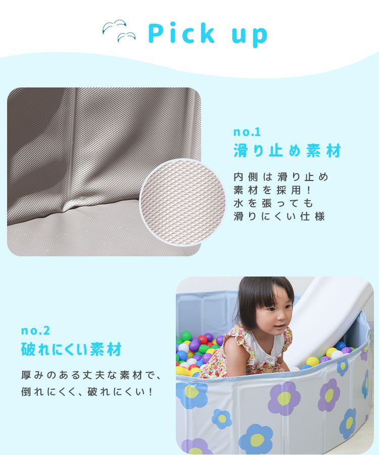 また、プールの内側は全面すべり止め仕様で安全に遊べます。