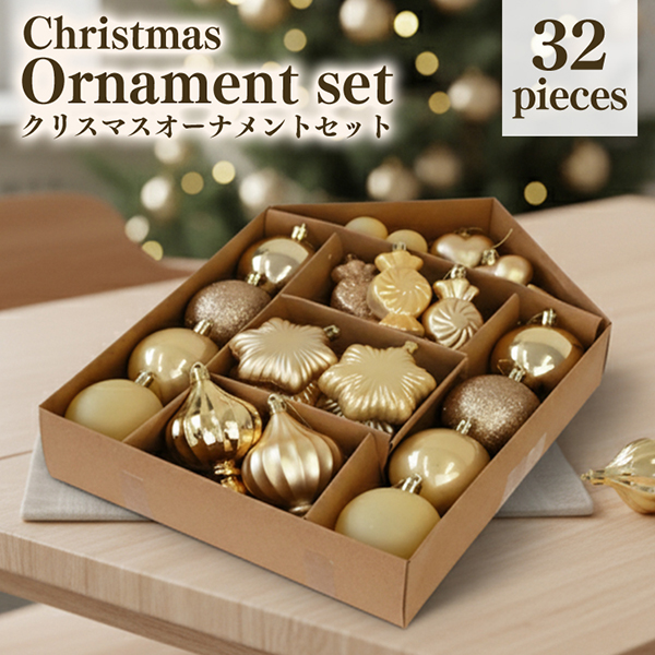 クリスマスツリー オーナメント セット 飾り クリスマス 32個 オーナメントセット おしゃれ 北欧 ゴールド ボール 星 ハート フィニアル キャンディー シンプル