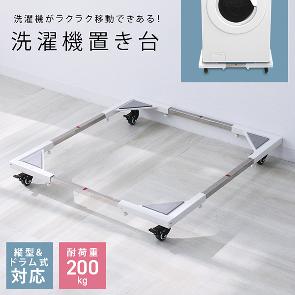 洗濯機置き台 耐荷重200kg ドラム式対応 キャスターストッパー付 洗濯機スライド台 台車 新生活 冷蔵庫 引っ越し 移動 洗濯機置き台 置き場 洗濯機置台