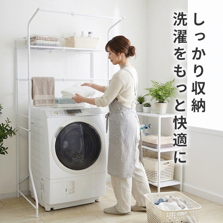 洗濯機の上部空間を有効活用できるランドリーラックです。