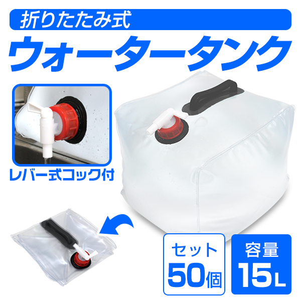ウォータータンク 15L 50個セット 折りたたみ レバー式コック付 非常用給水袋 大容量 ウェイト おもり バケツ 防災グッズ 非常用 災害 アウトドア キャンプ