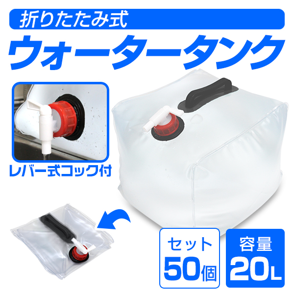 ウォータータンク 20L 50個セット 折りたたみ レバー式コック付 非常用給水袋 大容量 ウェイト おもり バケツ 防災グッズ 非常用 災害 アウトドア キャンプ