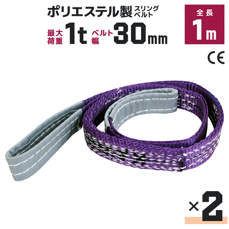 スリングベルト 1m 2本セット ポリエステルスリング 耐荷1000kg 30mm×1m ベルトスリング 運搬用スリング 吊具