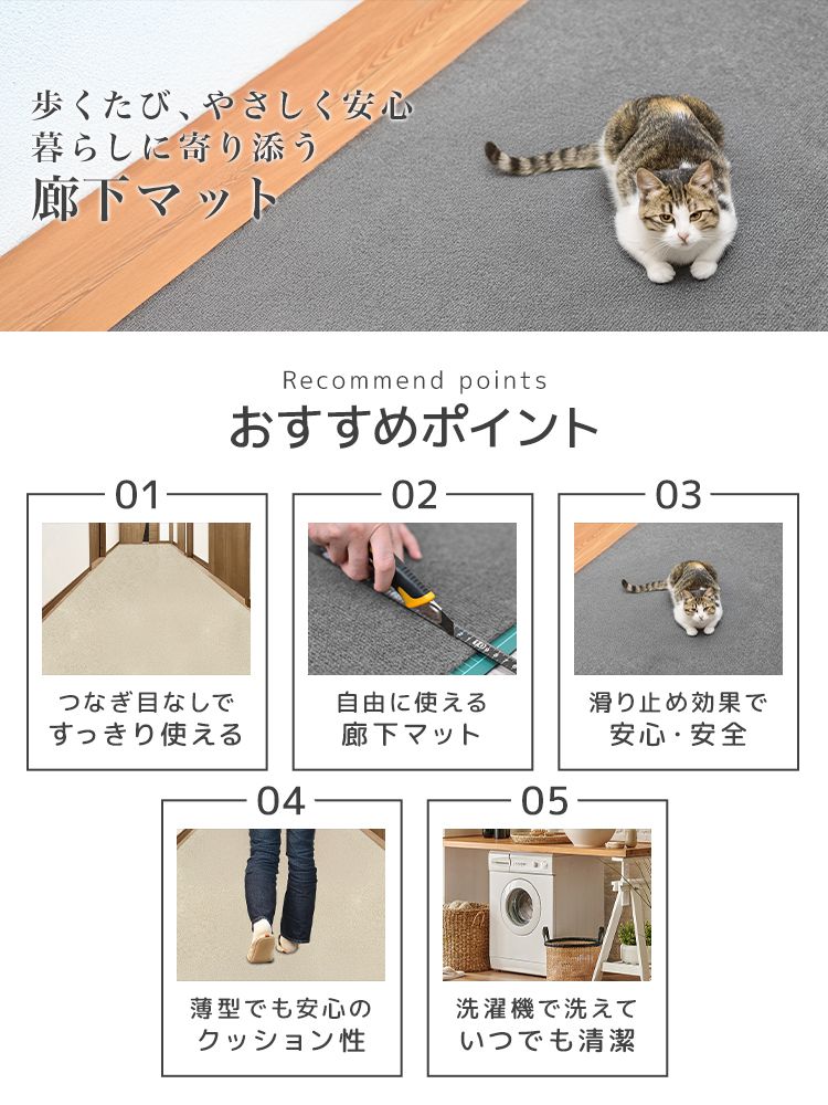 廊下マット 滑り止め 厚み4mm 防音 幅90cm 6m 傷防止 冷え対策 カット自由 丸洗いOK お手入れ簡単 フロアマット 玄関 廊下 キッチン用