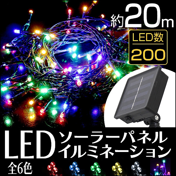 イルミネーション LEDイルミネーションライト ソーラー LED 200球 色選択 点灯8パターン 防滴 クリスマス ハロウィン キャンプ イルミネーションライト