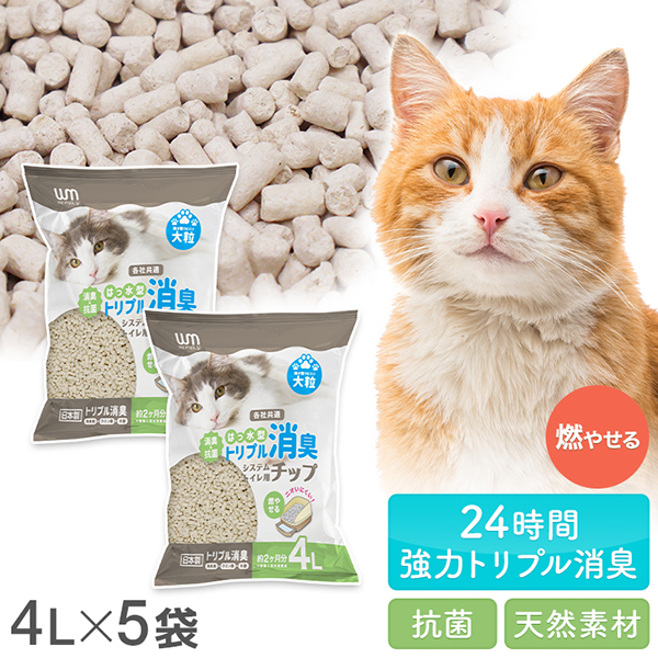 猫砂 システムトイレ用 4L×5袋 消臭 抗菌 脱臭 崩れにくい 飛び散り防止 匂わない 日本製 おすすめ