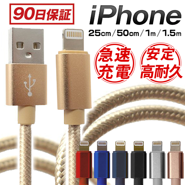 iPhone 充電ケーブル 1m 1.5m 25cm 50cm 急速充電 断線防止 強化素材 データ通信 iPhone12 11 iPhoneX iPhone各種 充電器 コード モバイルバッテリー