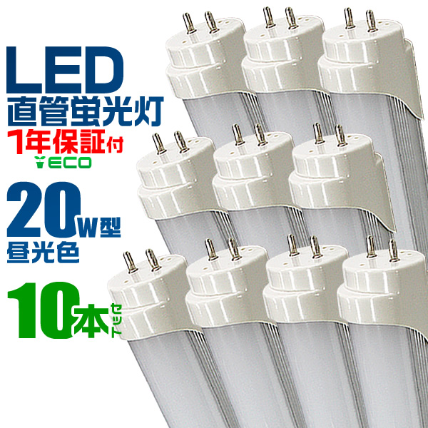 LED蛍光灯 20W型 10本セット 直管 LED蛍光灯 昼光色 58cm SMD 蛍光灯 グロー式工事不要 1年保証付き