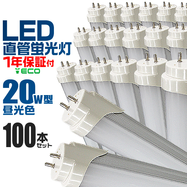 LED蛍光灯 20W型 直管 LED蛍光灯 昼光色 58cm SMD 蛍光灯 グロー式工事不要 1年保証付き 100本セット