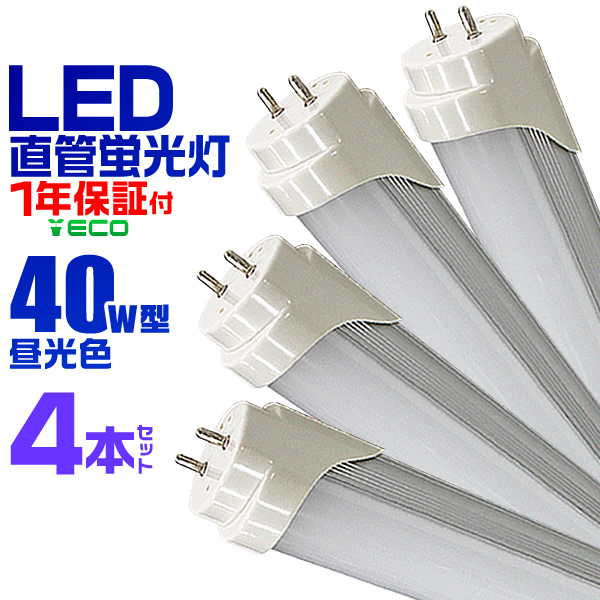 LED蛍光灯 40W 直管 昼光色 120cm SMD グロー式工事不要 1年保証付き 4本セット
