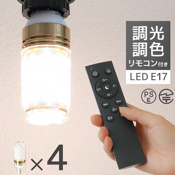 LED電球 調光調色 専用リモコン付 電球4個 LED照明 口金E17 60W相当 調光器対応 工事不要 照明 おしゃれ 電球 LED LEDライト 昼光色 昼白色 電球色 一年保証