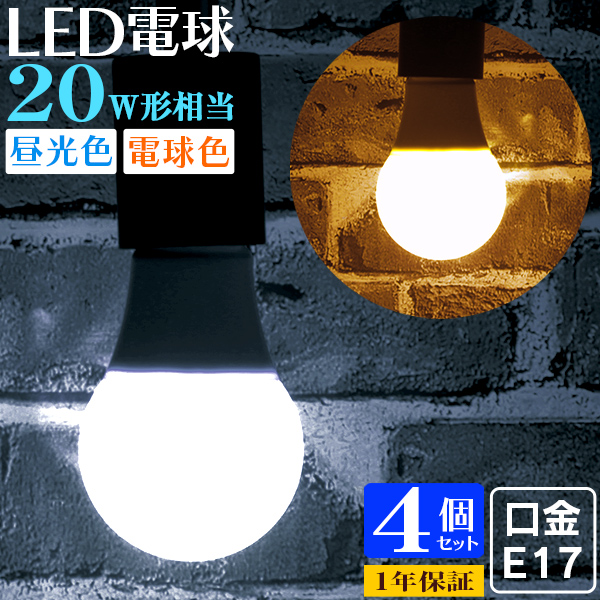 LED電球 5W 20W形 E17 一般電球 電球色 昼白色 ledランプ 省エネ 4個セット