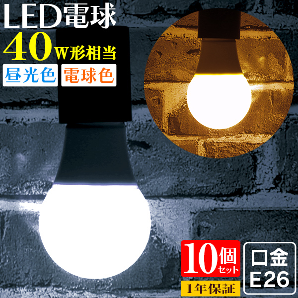 LED電球 8W 40W形 E26 一般電球 電球色 昼白色 ledランプ 省エネ 10個セット