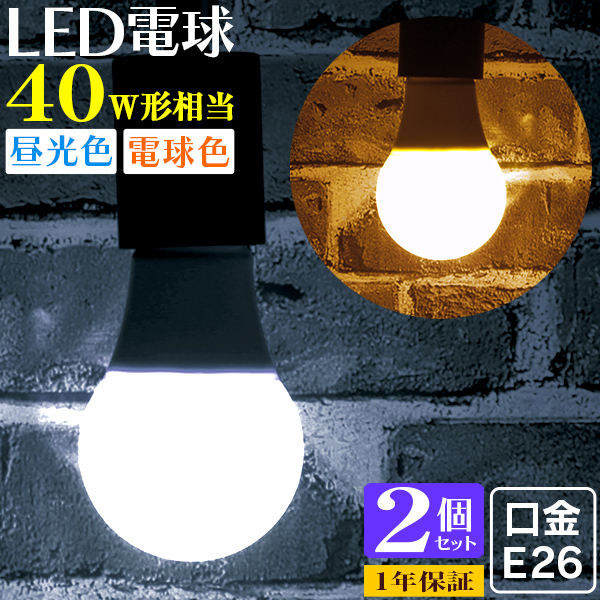 LED電球 8W 40W形 E26 一般電球 電球色 昼白色 ledランプ 省エネ 2個セット