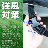 盗難防止用のロックの通し穴と強風対策用にワンタッチベルトがついています。