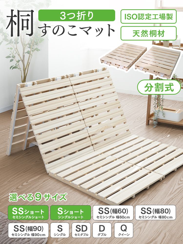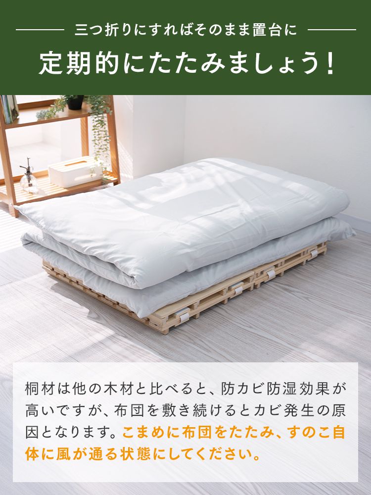 すのこベッド セミシングルすのこマット 三つ折り 桐 幅60cm 布団干し 折りたたみ 通気性 湿気対策
