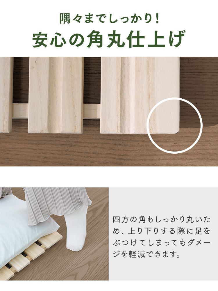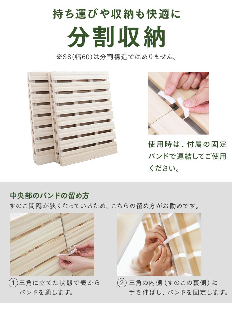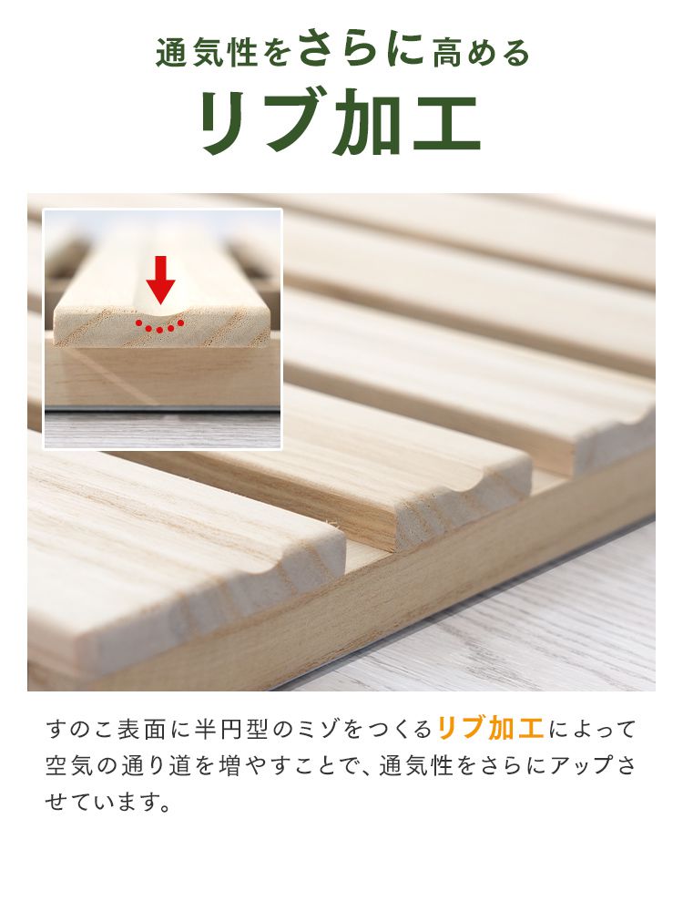 ・桟木厚2cm+板幅6〜9cmの最適バランスで通気性と安定性を両立。