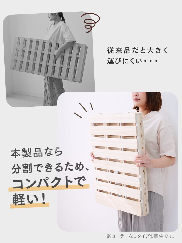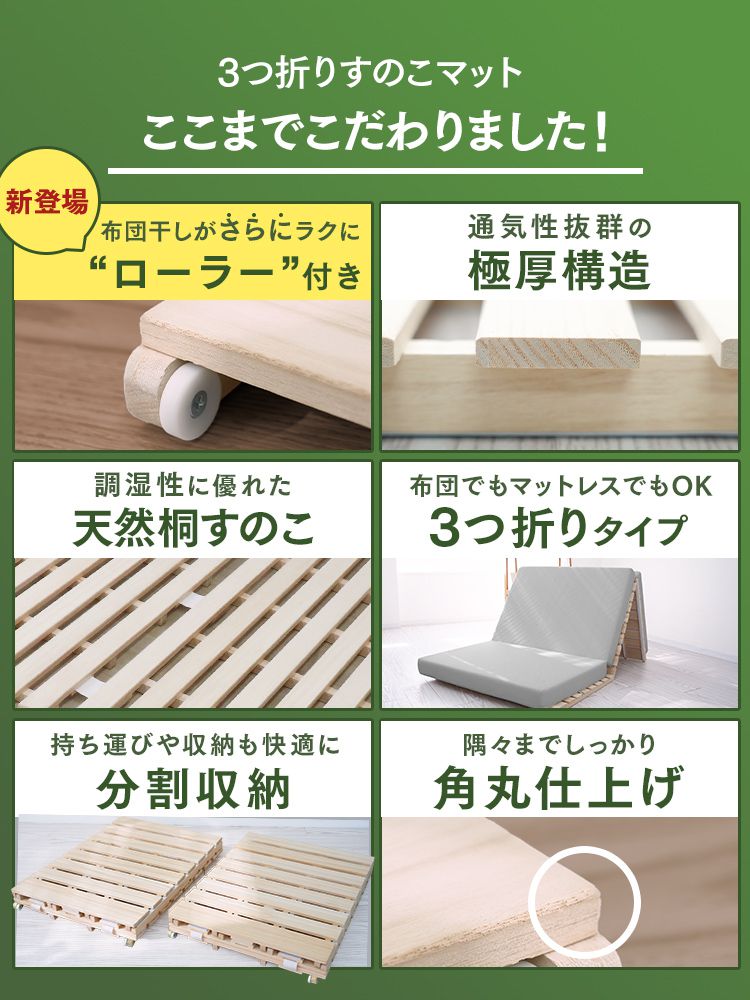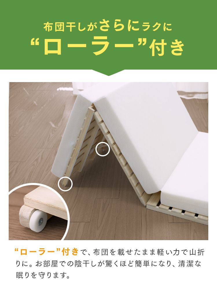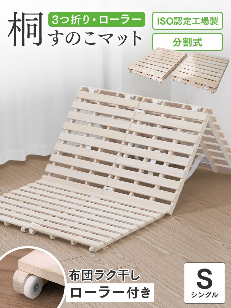 17日+5% すのこベッド シングルすのこマット 三つ折り 桐 布団干し 折りたたみ 通気性 湿気対策 ローラー付き
