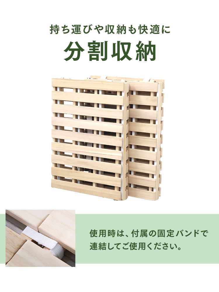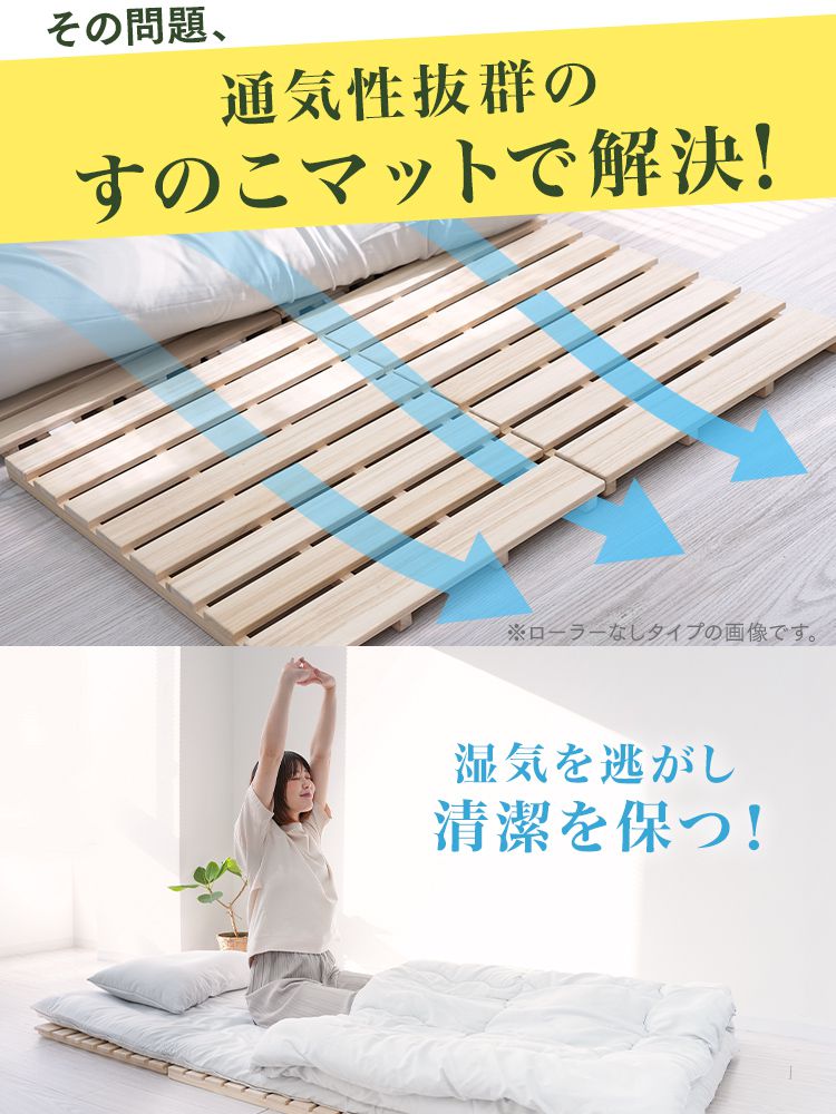 寝ている間にたまった布団の湿気をしっかり逃がす「桐すのこマット」。