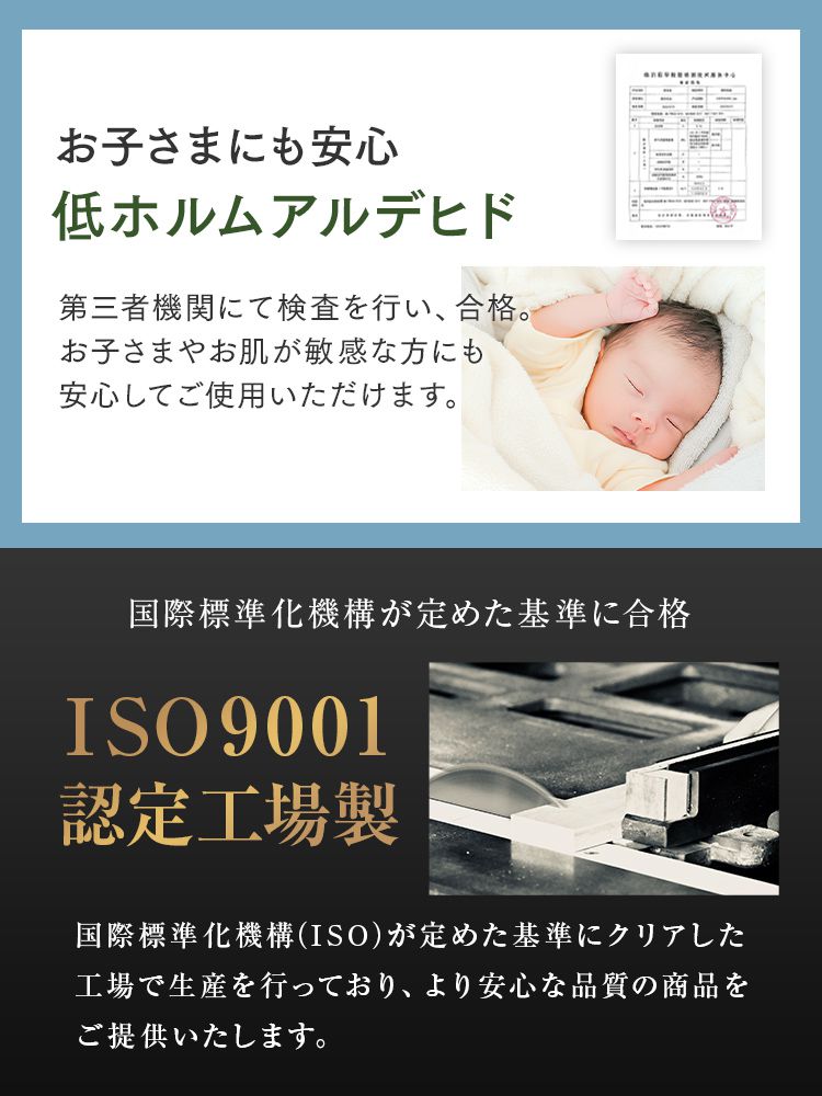 ・低ホルムアルデヒドでお子様にも安心。ISO9001認定工場生産の高品質。