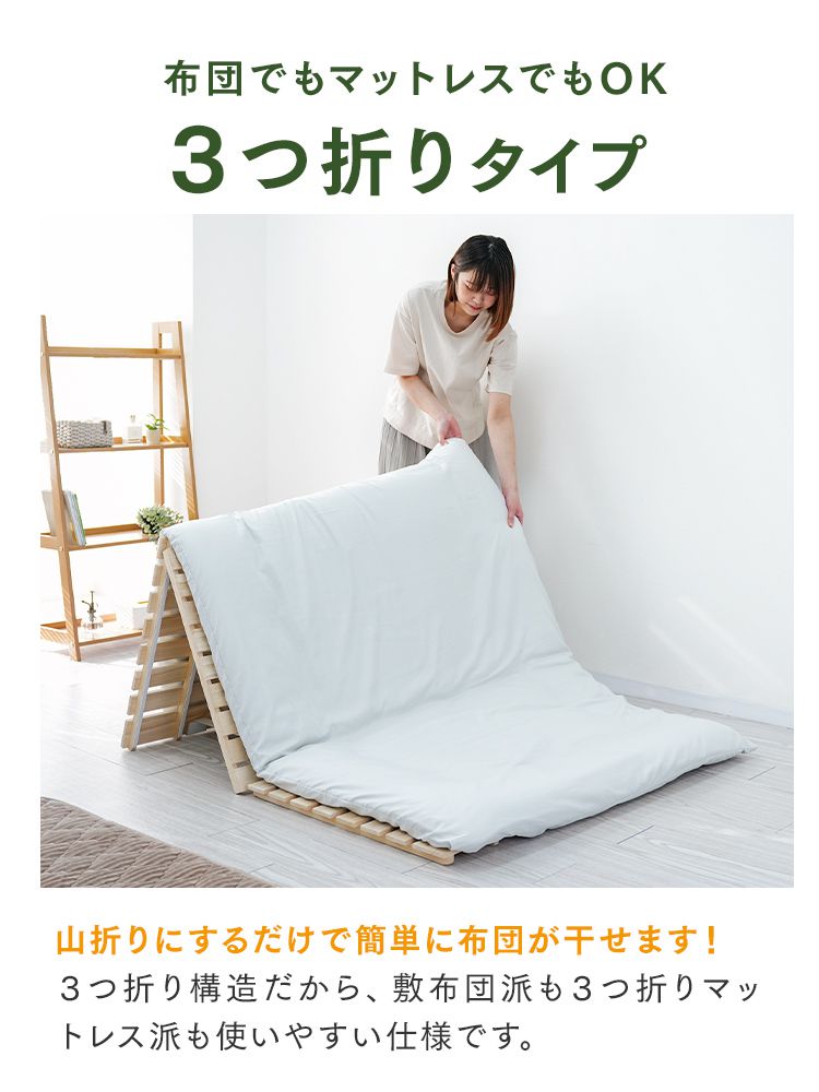 ・折りたたみ簡単!三つ折りタイプでコンパクト収納。布団を乗せたまま立てて干せます。